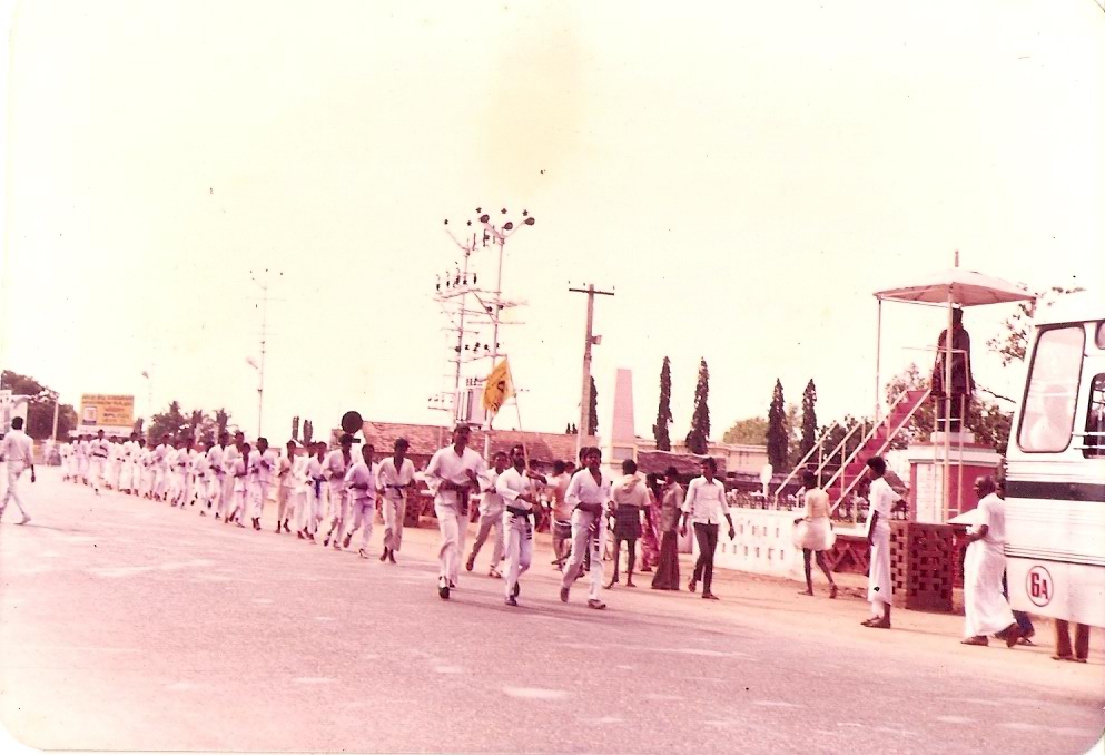Grand Master , Raja Maha Guru Kalugumanayar was renowned for his physical fitness and vigorous, dedicated fitness regimen to become as strong as he possibly could. In  1974 , He founded Chola Martial Arts and trained youth and practitioners across India and introduced many to the world as trained Instructors, Champions and Masters of Kuttu Varisai , Karate, Silambam, Nun-Chuck and Sword. Trained Masters and Instructors from Kalugumanayar’s CHOLA MARTIAL ARTS contributed training as sport and events to thousands of thousands youth and students across Tamilnadu , India , Asia and Middle-East. Kalugumanayar C.Chandrasekaran Contributed his Art & Techniques to the development of Silambam as Sport by serving as Secretary of TamilNadu Silamabattam Association. Later he was elected to continue his contribution to the development of Silambam,Traditional Martial Art of India as Technical Director of Indian Silambam Federation and Tamilnadu Silambattam Association(From….Till Date)